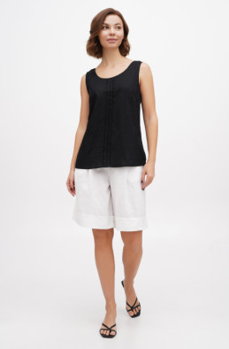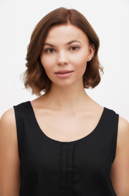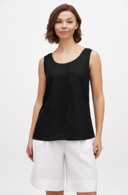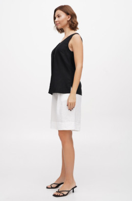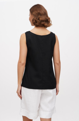 The blouse made of thin linen/viscose blend. It has slits in side seams and no zip.