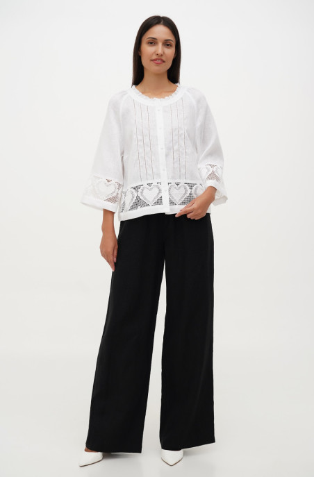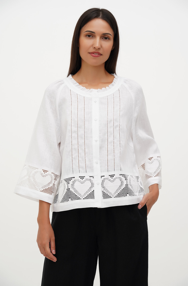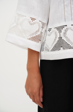 The blouse made of soft linen decorated with embroidery and drawn thread work.