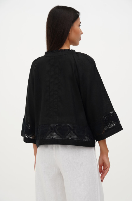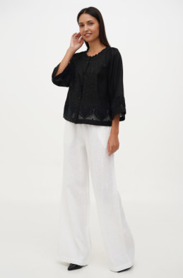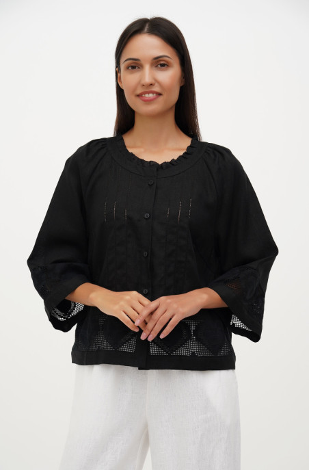 The blouse made of soft linen decorated with embroidery and drawn thread work.