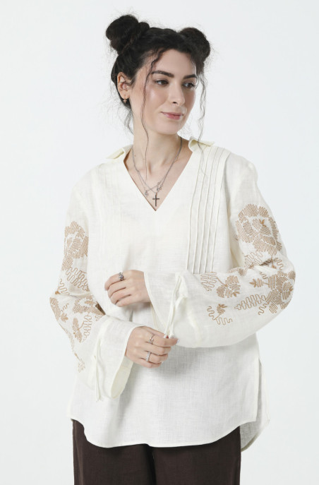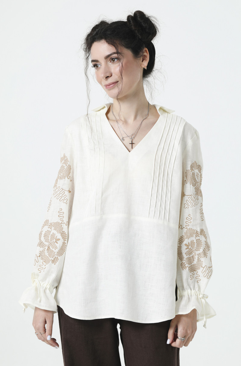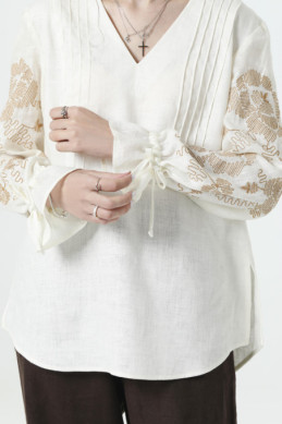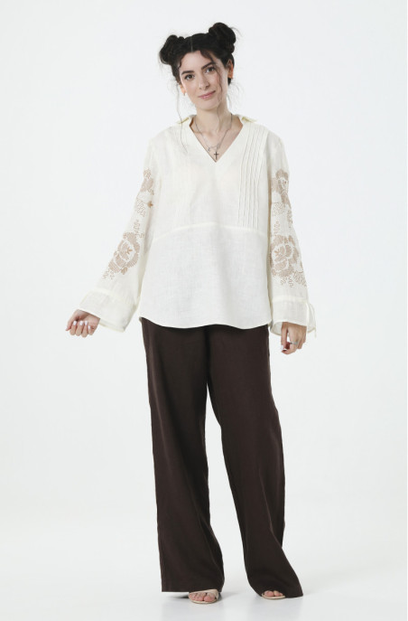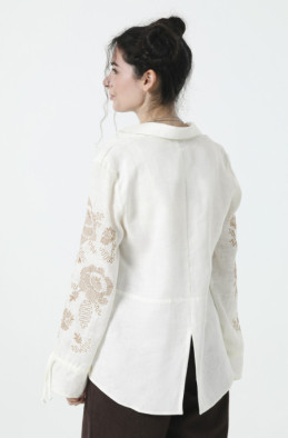 The linen blouse for your special events. It has slits in side seams and on the back.