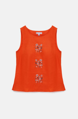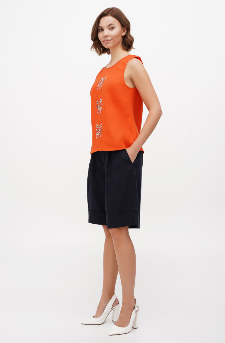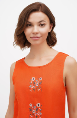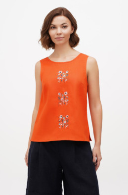 The embroidered blouse made of soft linen. It has slits in side seams and no zip.