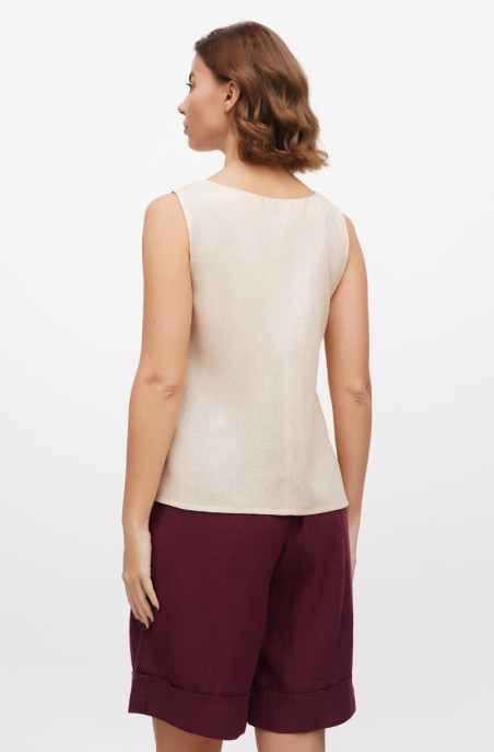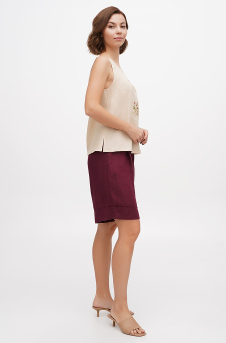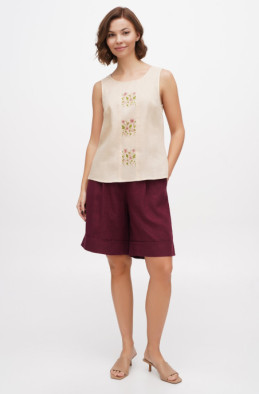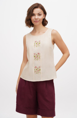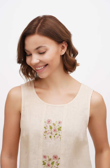 The embroidered blouse made of soft linen. It has slits in side seams and no zip.