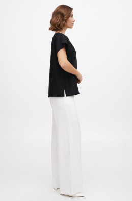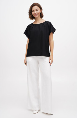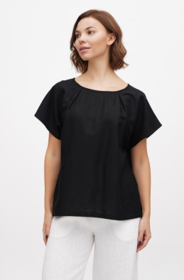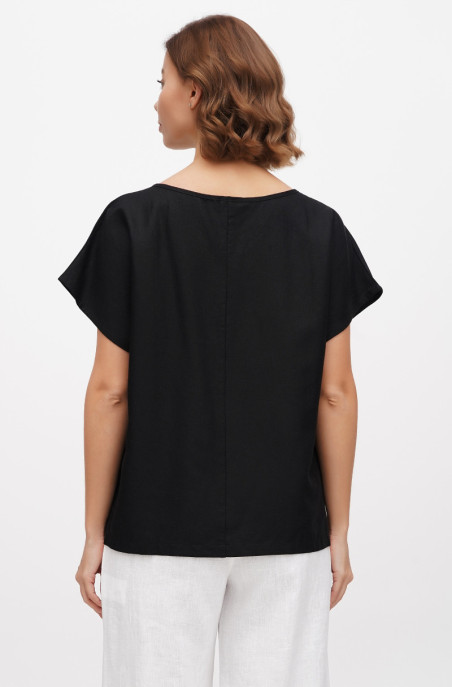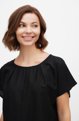 The loose blouse made of thin linen/viscose blend. It has slits in side seams and no zip.