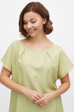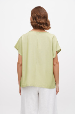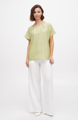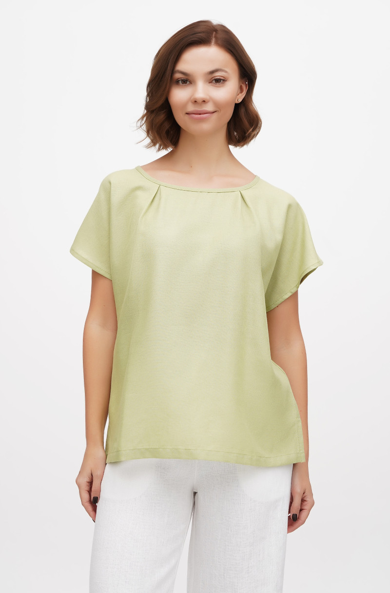 The loose blouse made of thin linen/viscose blend. It has slits in side seams and no zip.