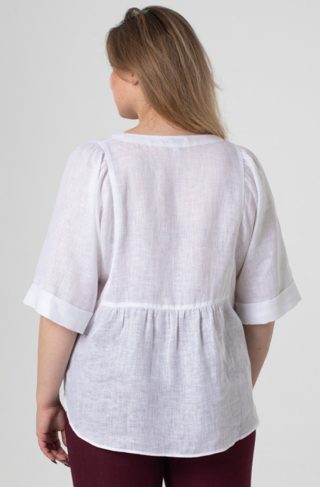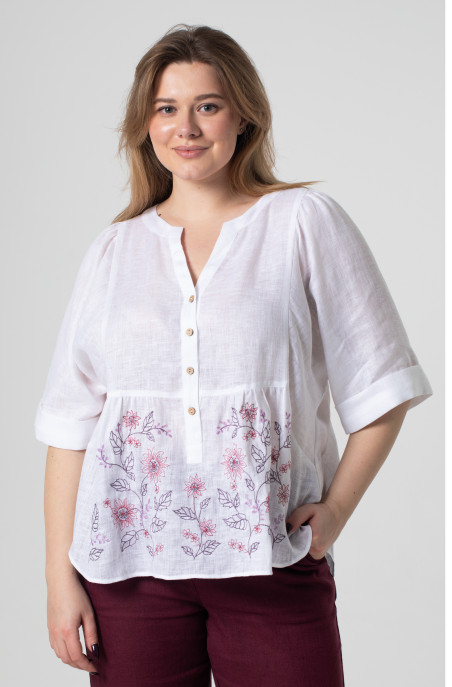 The plus size blouse made of thin linen and decorated with embroidery. The slits are in side seams. It has buttons at the front. (Code 9496/44/101)