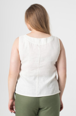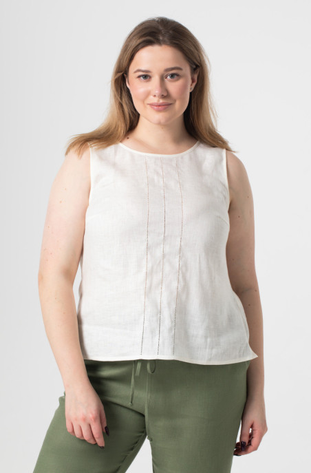 The blouse made of thin linen decorated with drawn thread work. It has slits in side seams (Code 90020/44/1403)