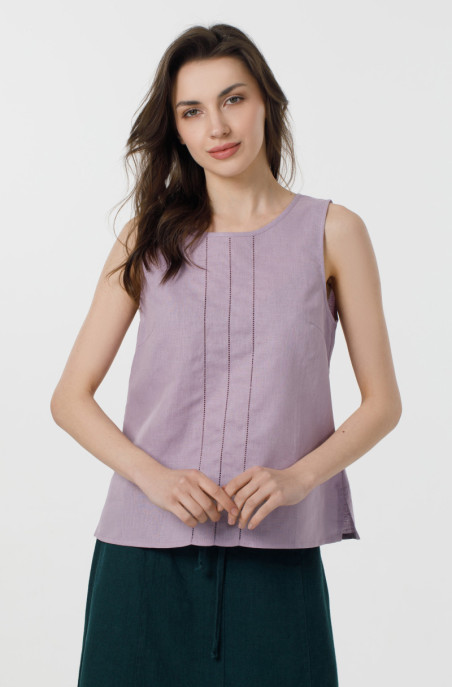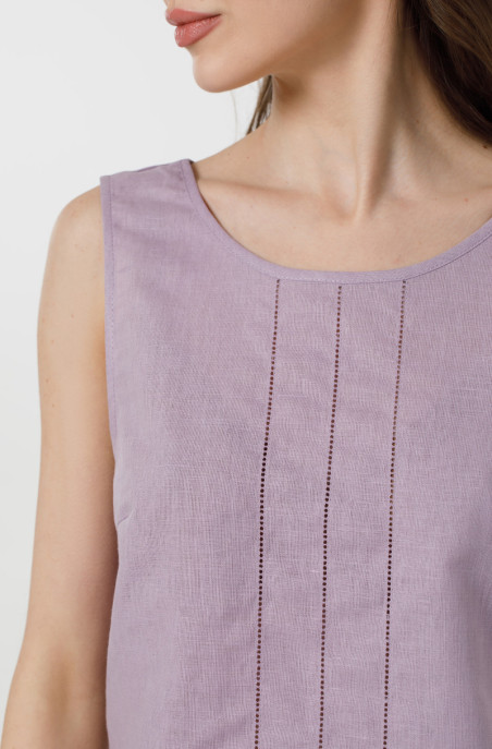 The blouse made of thin linen decorated with drawn thread work. It has slits in side seams (Code 90020/44/723)