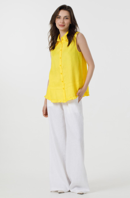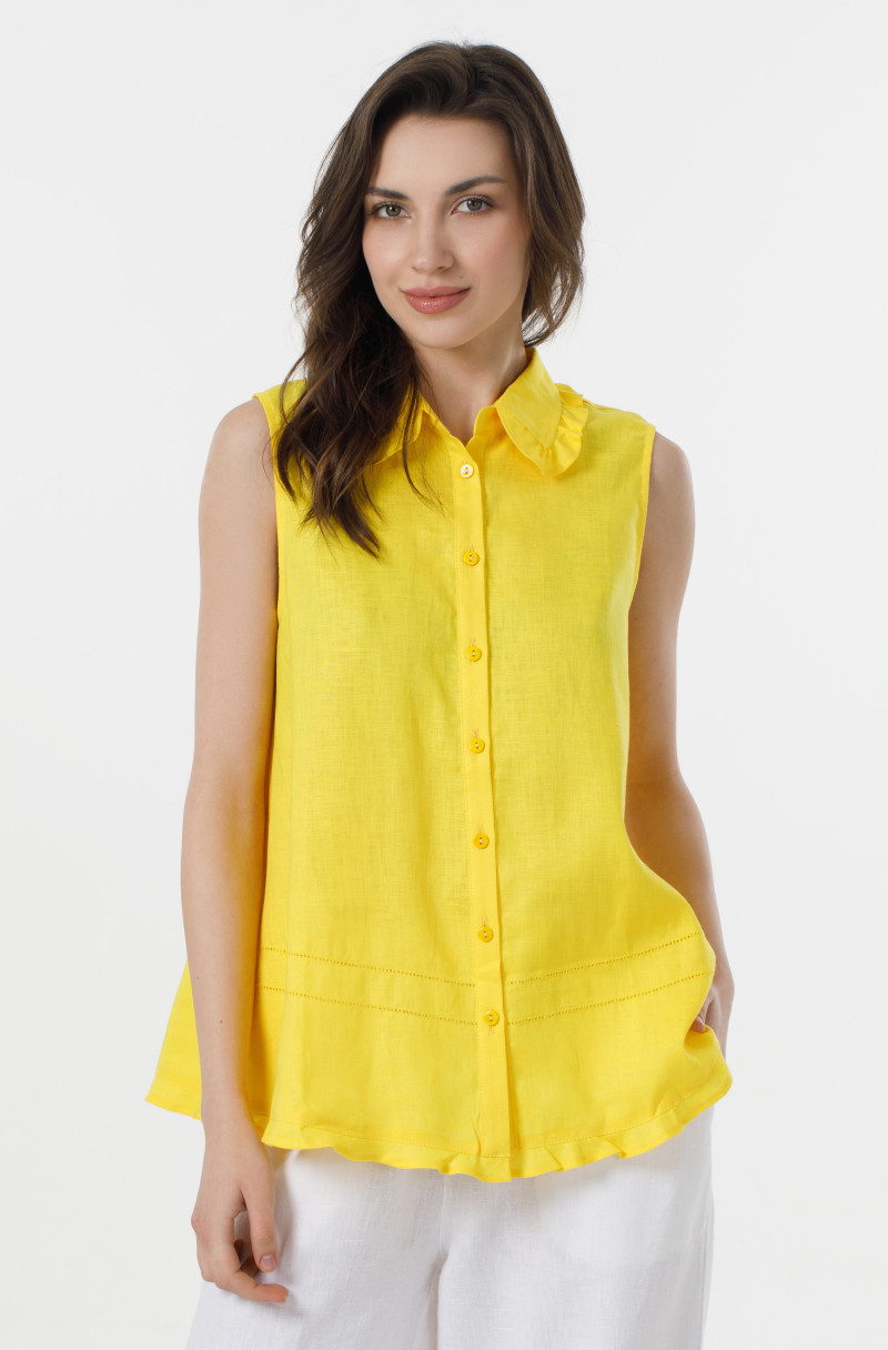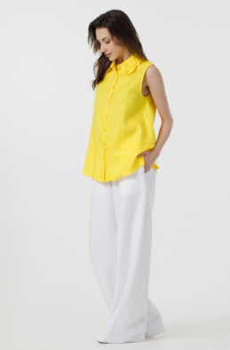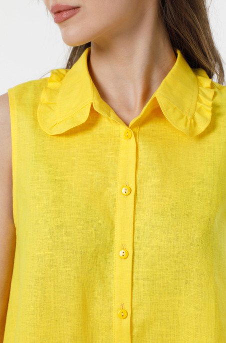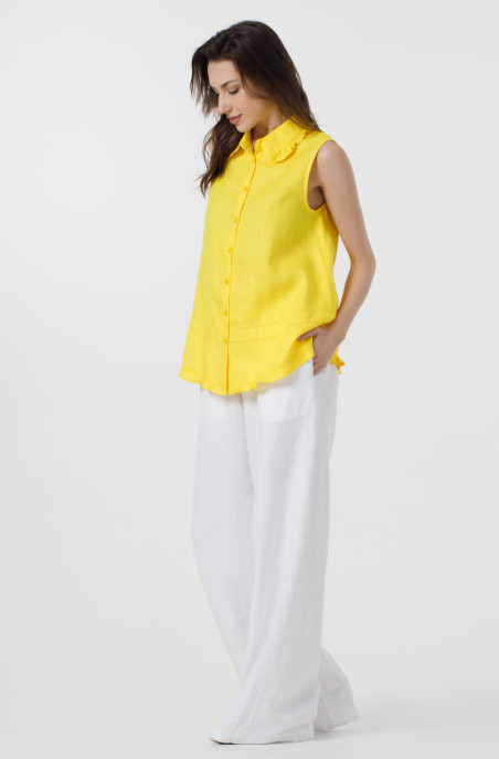 The loose blouse made of thin linen decorated with ruffles and lace. It has buttons at the front. (Code 90027/42/1284)