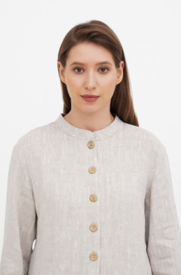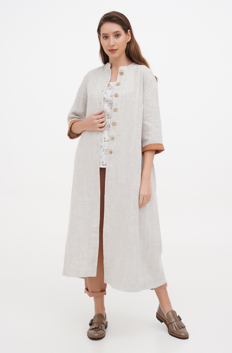 The thick softened linen coat without lining. It has pockets in side seams.