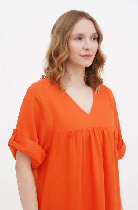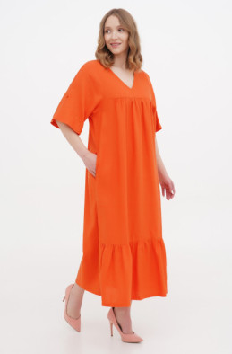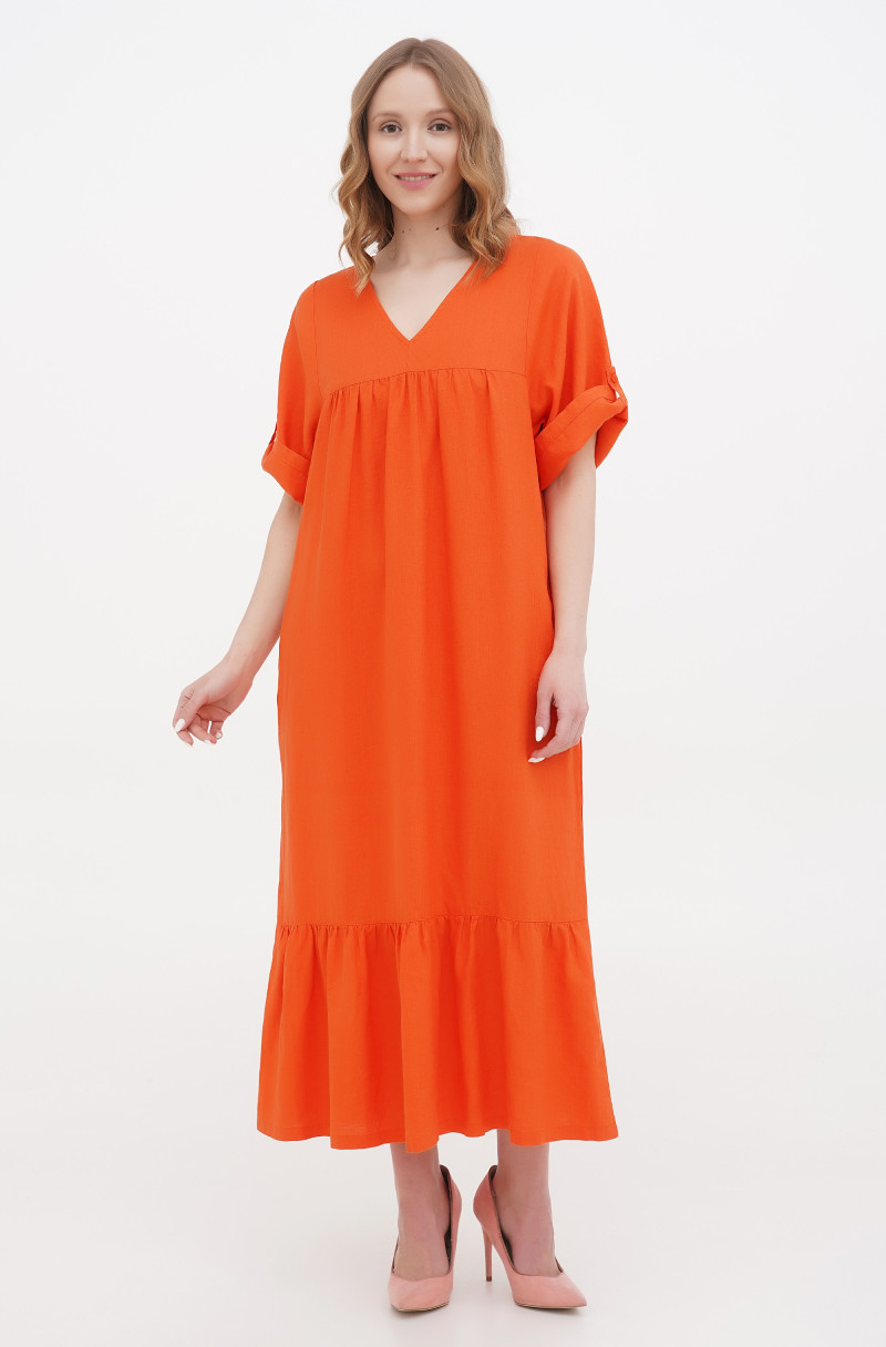The plus size dress made of softened thin linen. It has pockets in side seams.