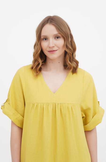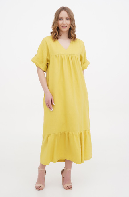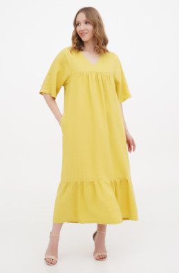 The plus size dress made of softened thin linen. It has pockets in side seams.