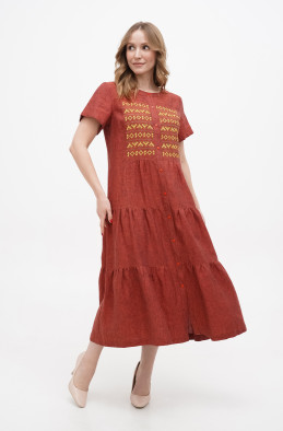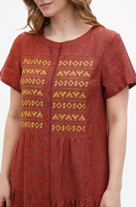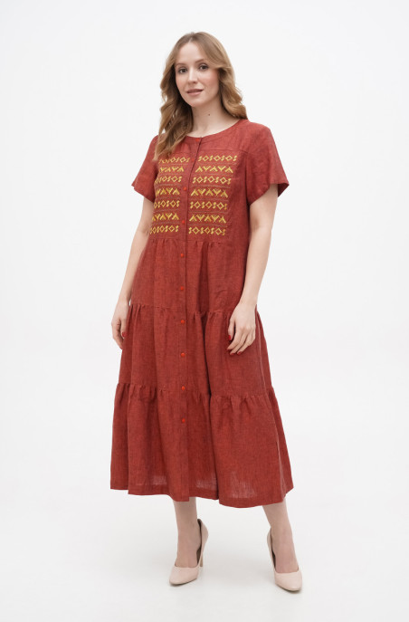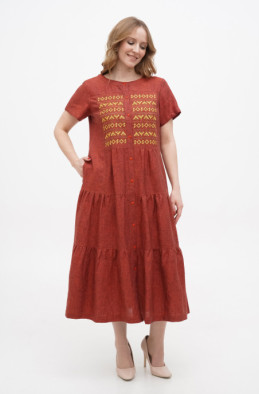 The linen dress with embroidery and drawn thread work. There are pockets in side seams.