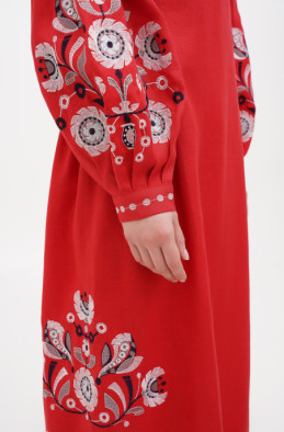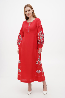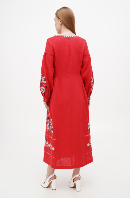 The linen dress with embroidery for your special events. It has a zip on the back and no pockets.