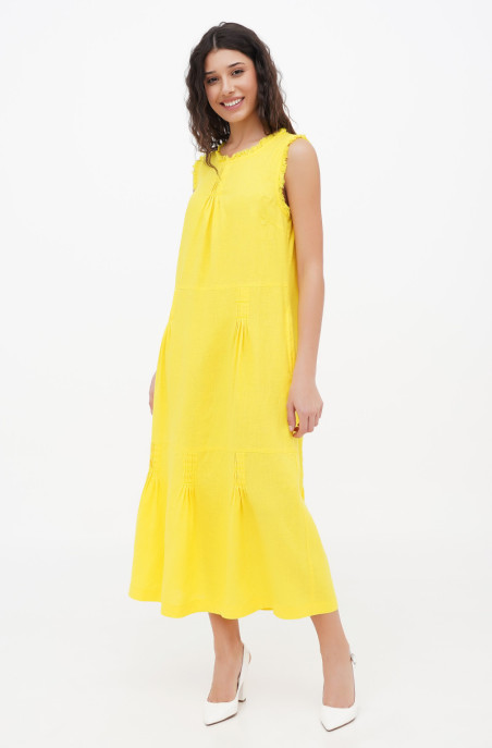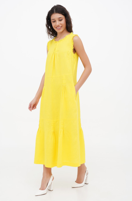 The dress made of soft linen. There are pockets in side seams. It has buttons on the back.