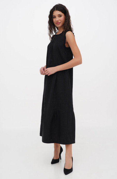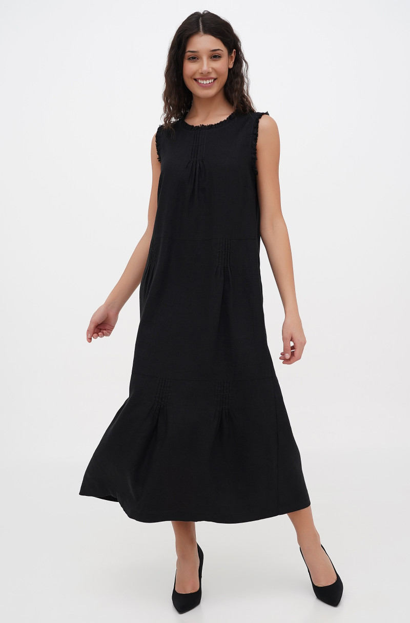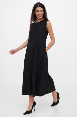 The dress made of soft linen. There are pockets in side seams. It has buttons on the back.