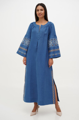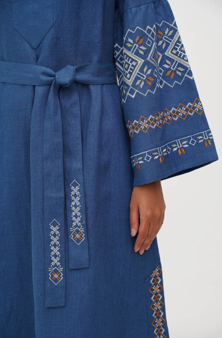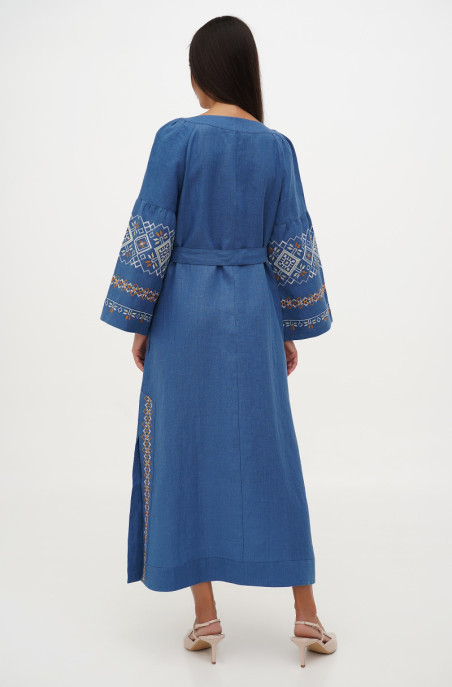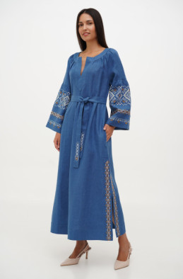 The long embroidered dress for your special events. It has pockets in side seams and waist belt.