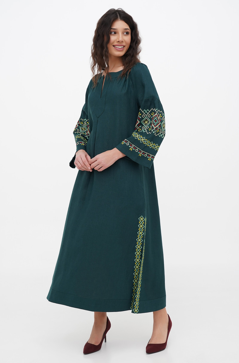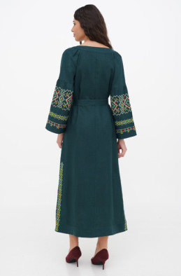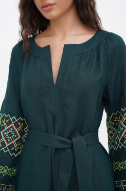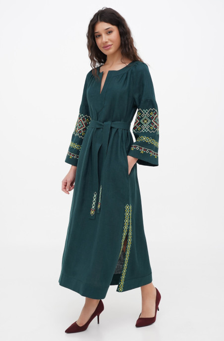 The long embroidered dress for your special events. It has pockets in side seams and waist belt.