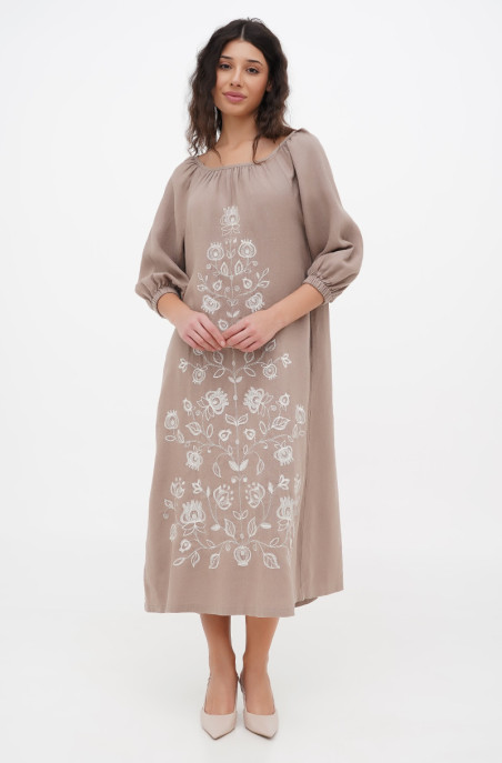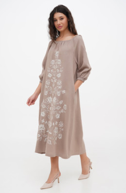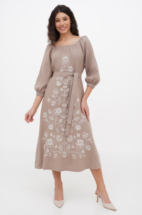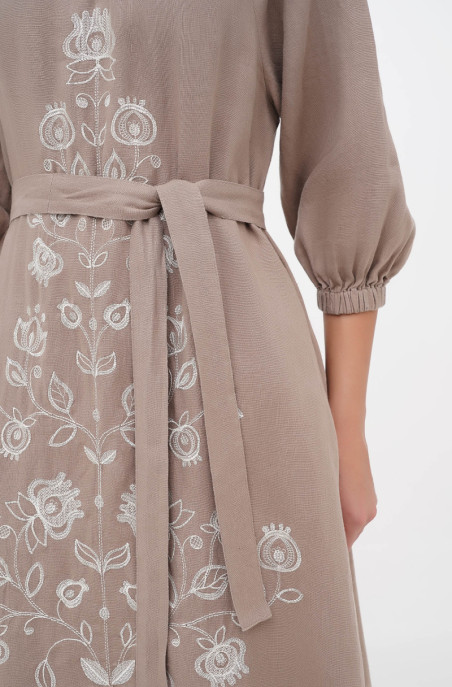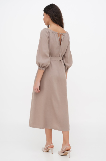 The softened linen dress with raglan sleeve and pockets in side seams. It has a waist belt.