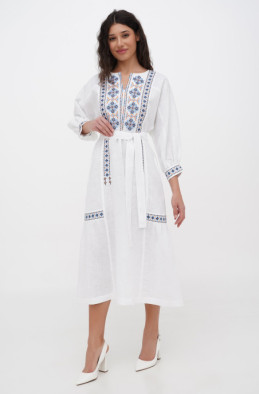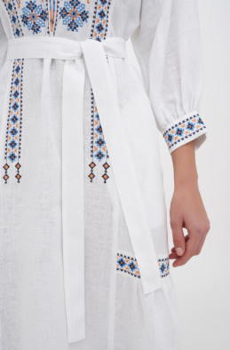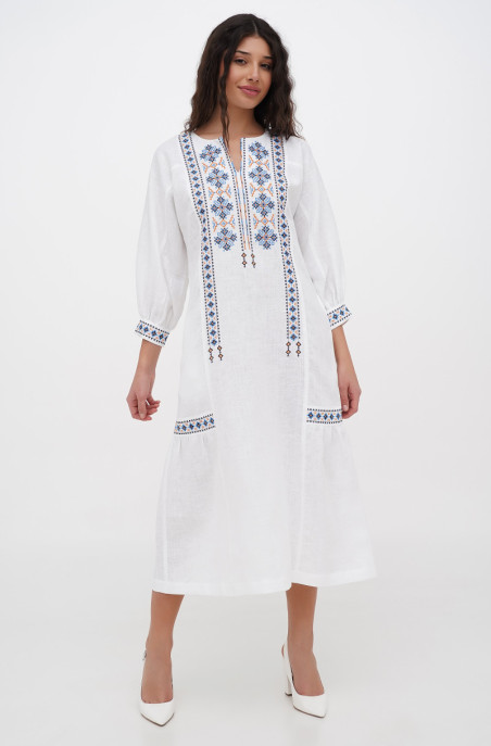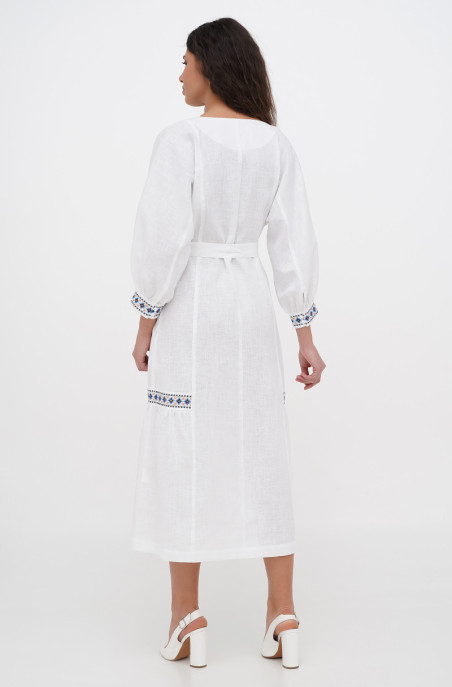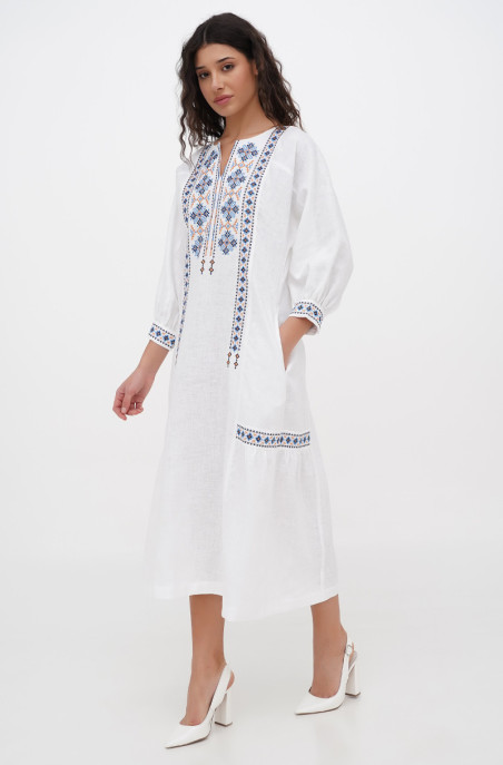 The embroidered linen dress for your special events. It has pockets in side seams and no zip.