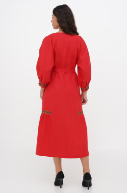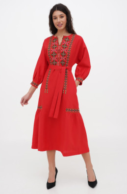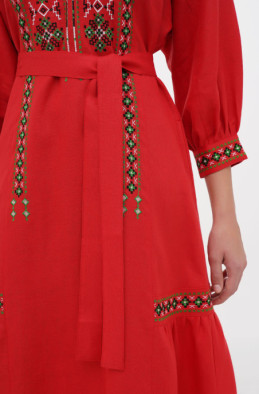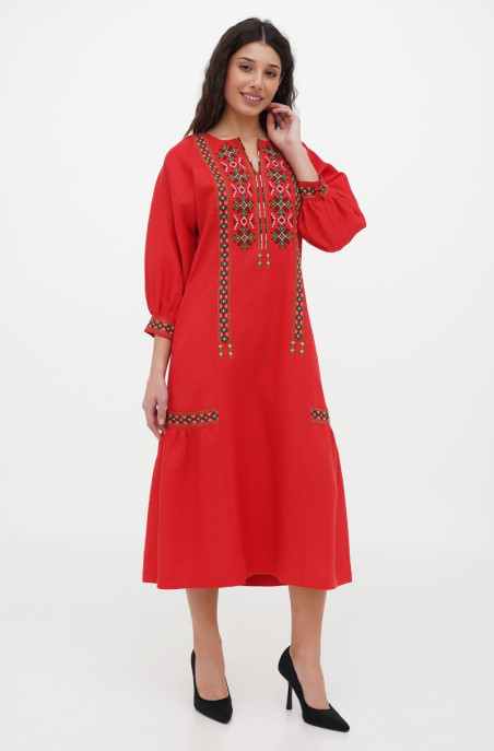 The embroidered linen dress for your special events. It has pockets in side seams and no zip.