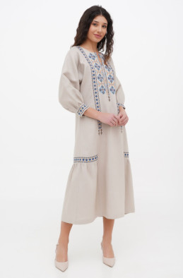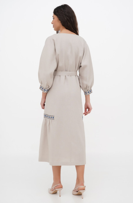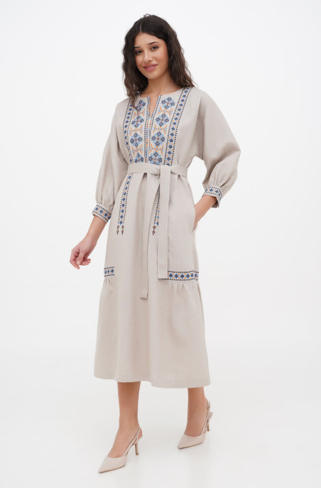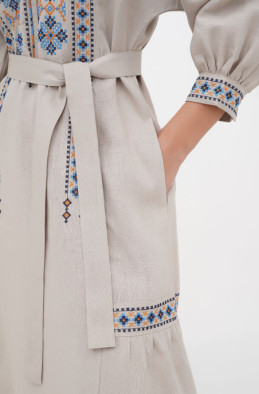 The embroidered linen dress for your special events. It has pockets in side seams and no zip.