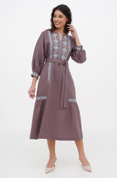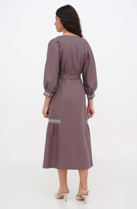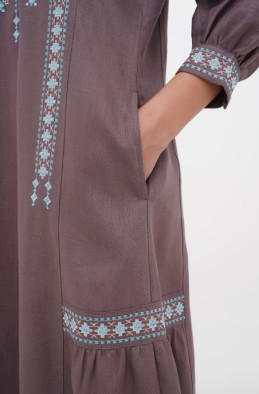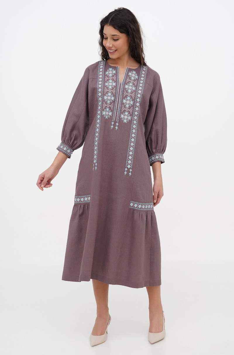The embroidered linen dress for your special events. It has pockets in side seams and no zip.