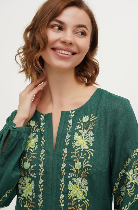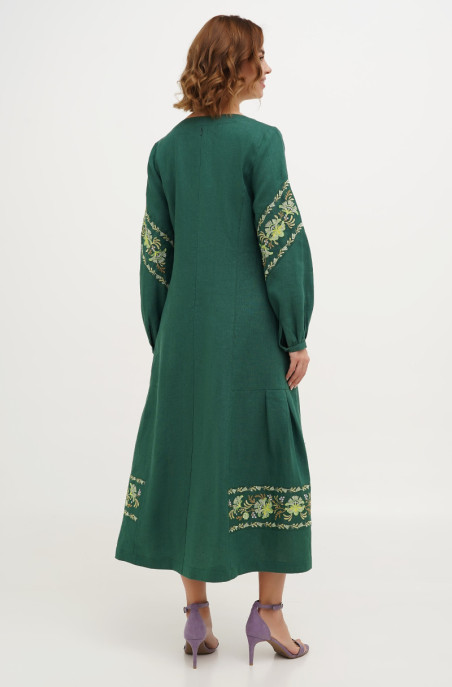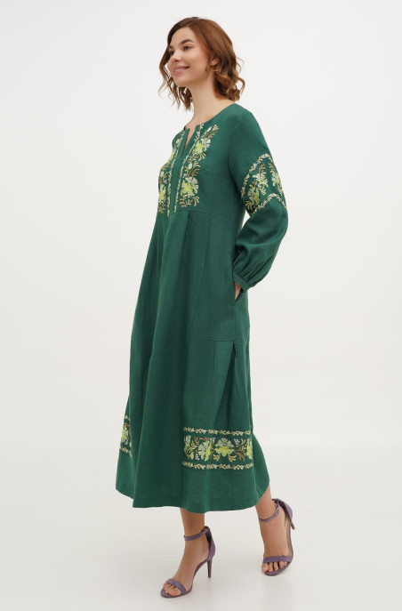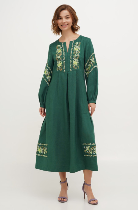 The embroidered linen dress for your special events. It has pockets in side seams and no zip. Dresses from 38 to 44 are with belt.
