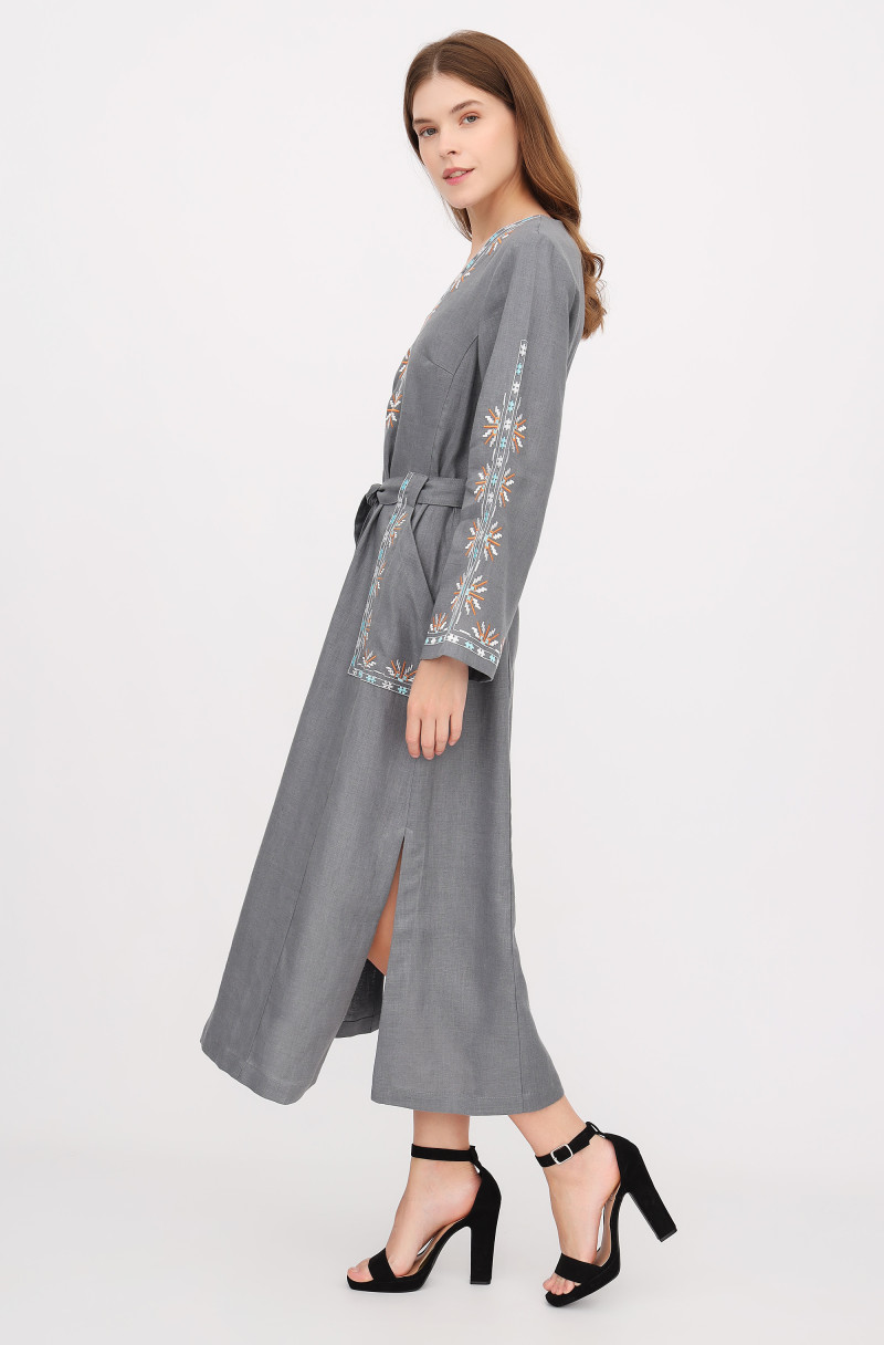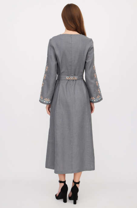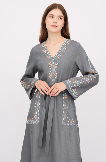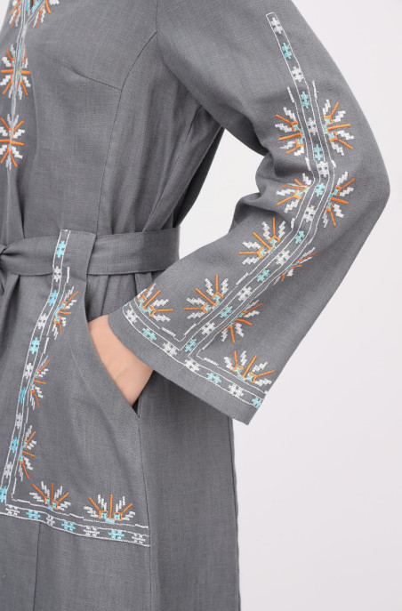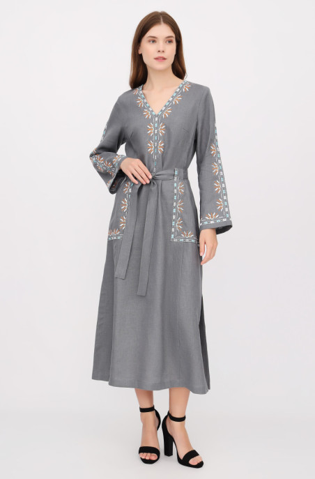 The linen embroidered dress for your special events. It has pockets and a zip on the back.