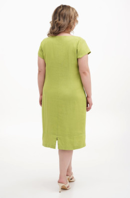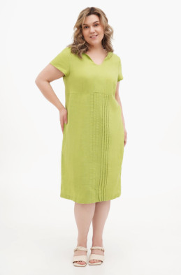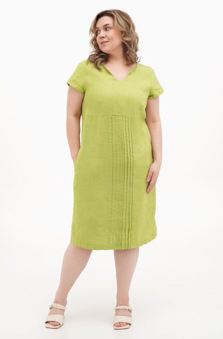 The plus size dress made of softened linen. There are pockets in side seams. It has no zip.