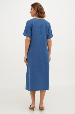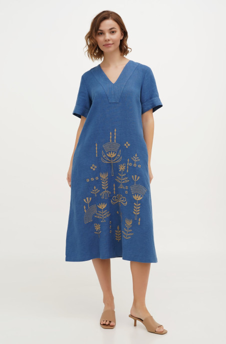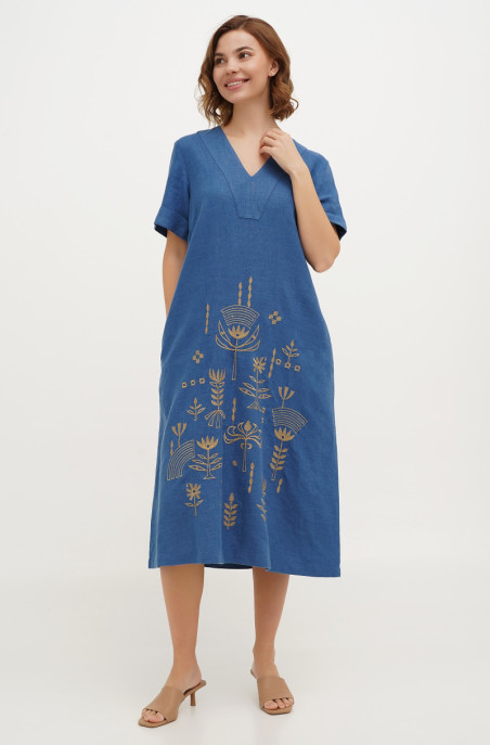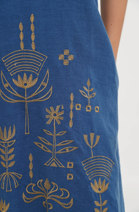 The dress with embroidery made of softened linen. There are pockets in side seams. It has a zip on the back.