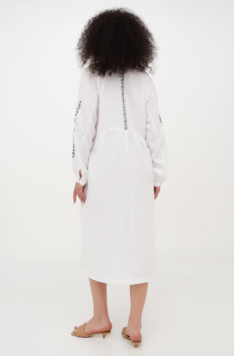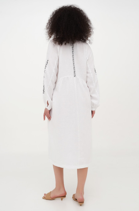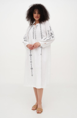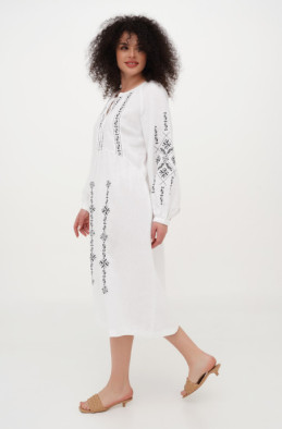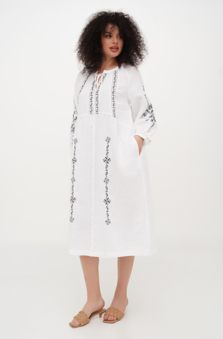 The embroidered boho linen dress. It has raglan sleeves, pockets in side seams and no zip.