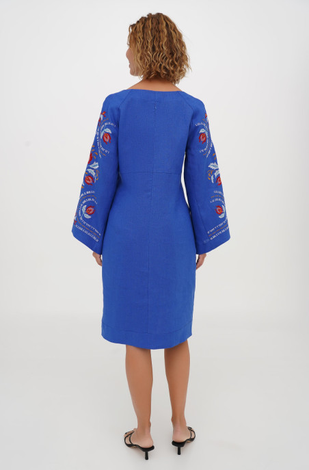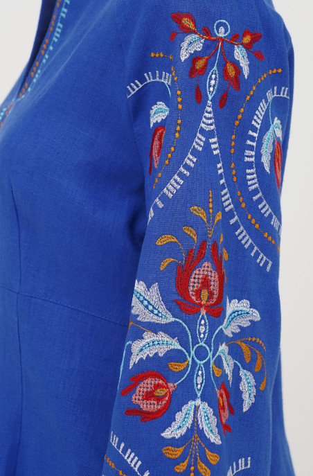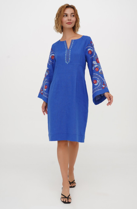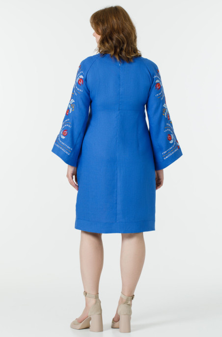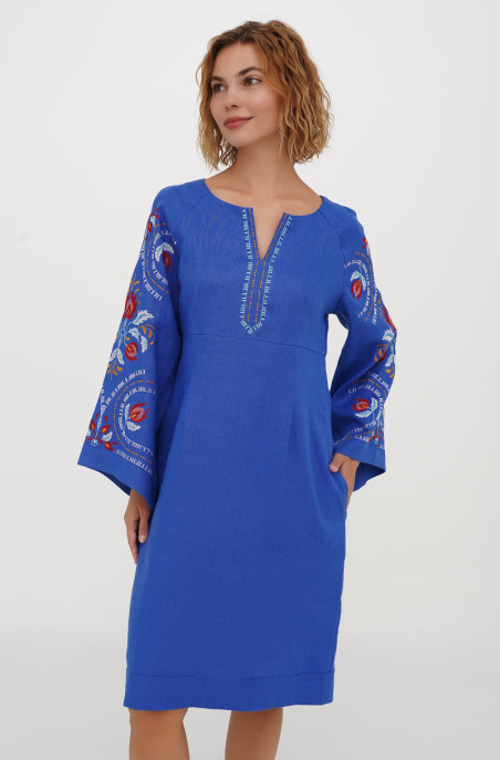The embroidered linen dress. It has pockets in side seams and a zip on the back.