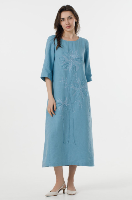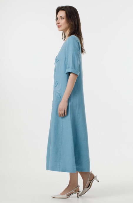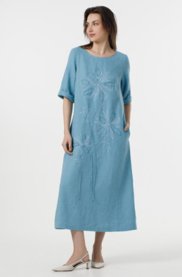 The linen dress decorated with embroidery. It pockets in side seams and no zip. (Code 00023/42/101)