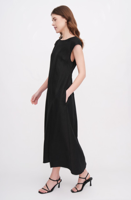 The linen dress with a zip on the back. It has pockets in side seams. (Code 00013/44/1284)