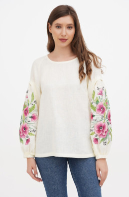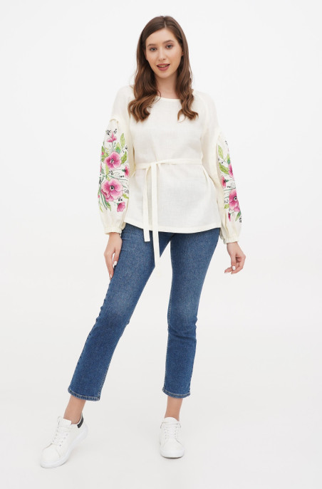 The thin linen tunic blouse made with raglan sleeves and slits in the side seams. Can be worn with belt.