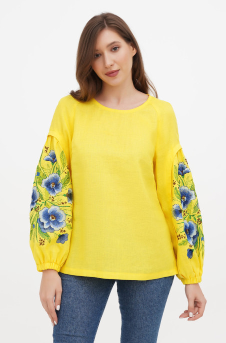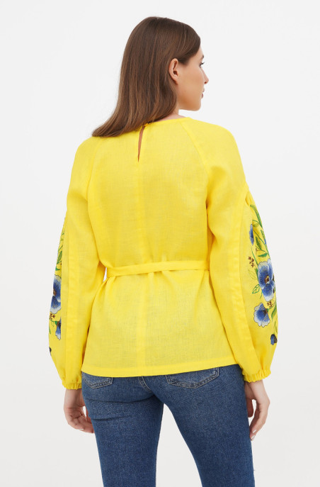 The thin linen tunic blouse made with raglan sleeves and slits in the side seams. Can be worn with belt.