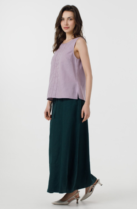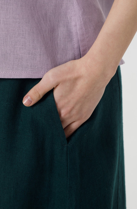 The skirt made of thick linen. It has an elastic band and pockets in side seams. A zip is on the back. (Code 70032/44/133)