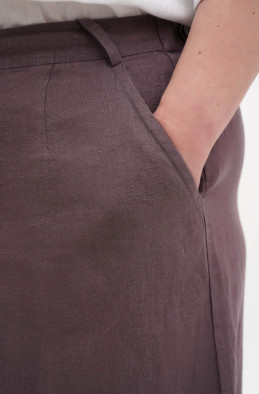 The pants made of linen. They have pockets in side seams and a zip on the back.