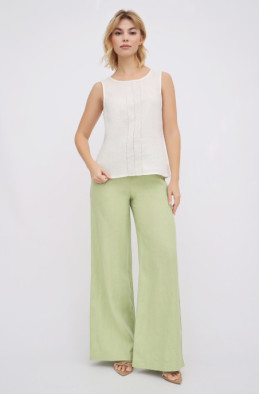 The loose pants made of softened linen. They have elastic band with cord, pockets and no zip (Code 80021/42/101)