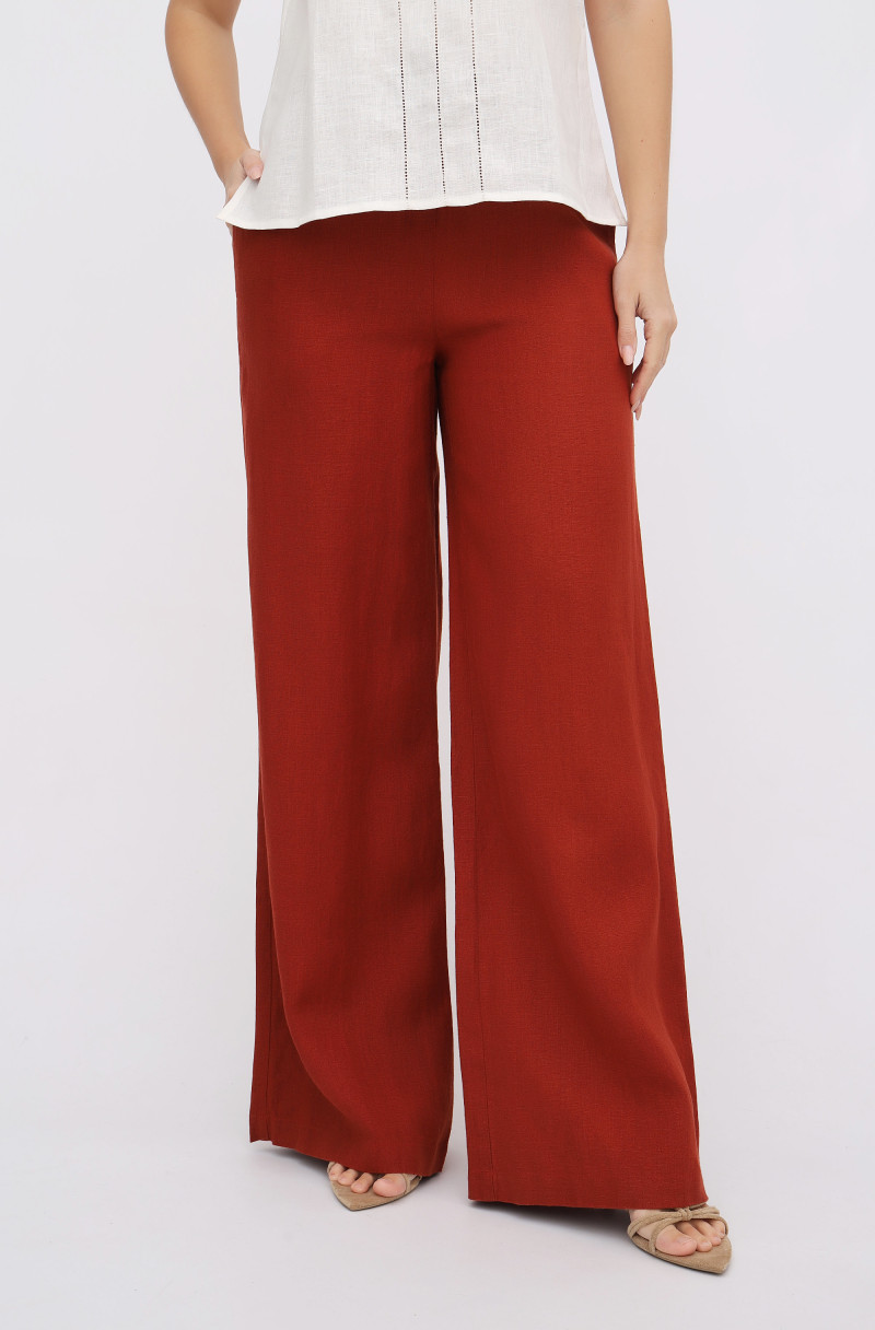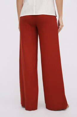 The loose pants made of softened linen. They have elastic band with cord, pockets and no zip (Code 80021/42/0779)