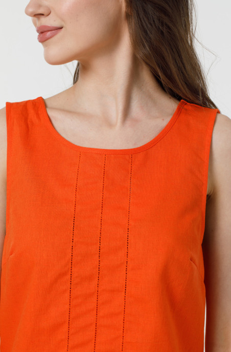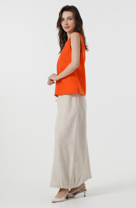 Блуза из тонкой льняной ткани, по переду украшена мережкой. Внизу по боковым швам — разрезы. (Код 90020/44/200)