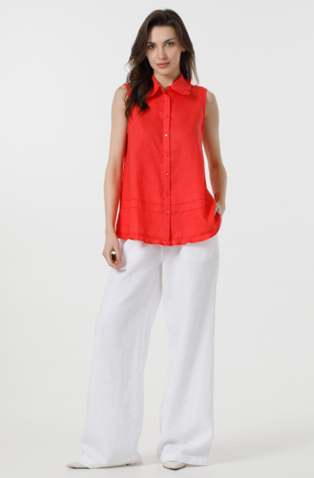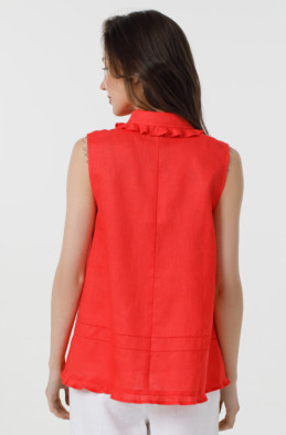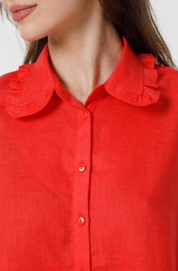 Свободная блуза из тонкого льна А-образного силуэта. Блуза украшена рюшами и мережкой. Застёжка по переду на пуговицы. (Код 90027/42/1284)