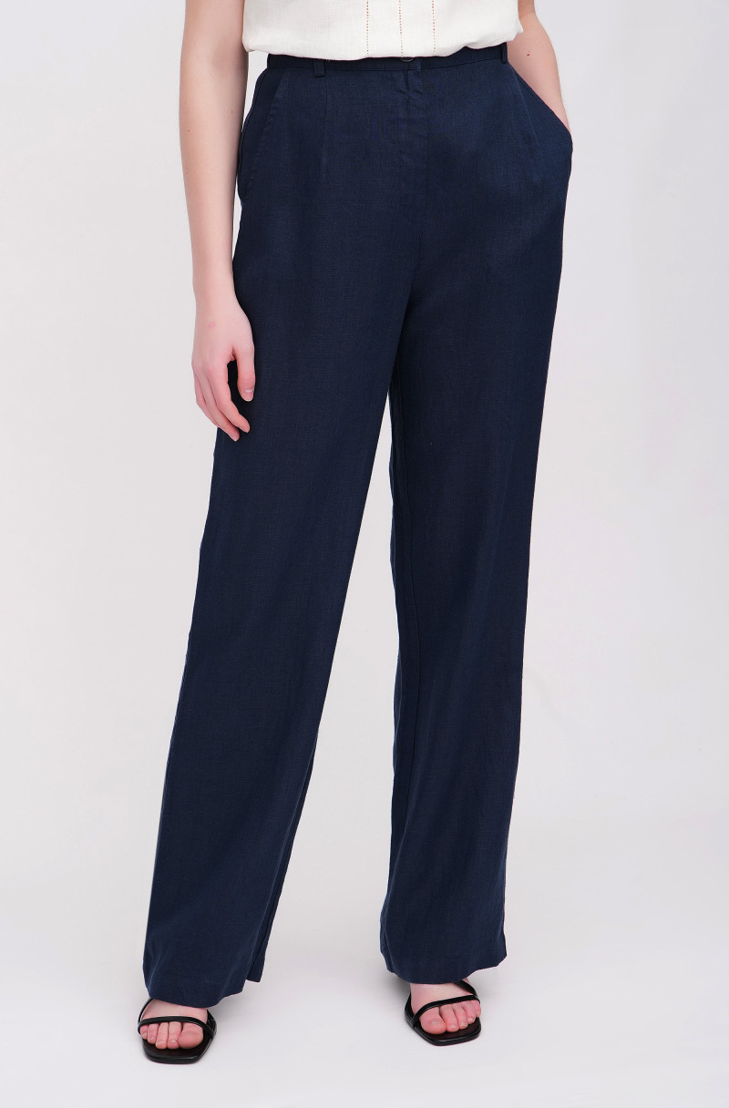 Свободные прямые брюки из льна средней плотности. В брюках есть боковые карманы и застежка-молния по переду. Брюки с эффетом крэш. (Код 8281/42/999)