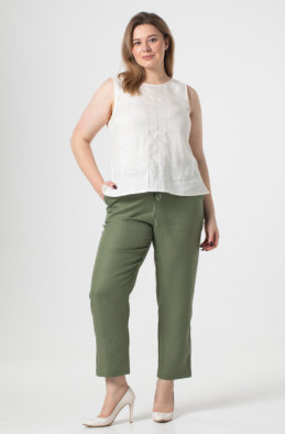 Блуза з тонкої лляної тканини, спереду прикрашена мережкою. Внизу по бічних швах — розрізи. (Код 90020/44/1403)