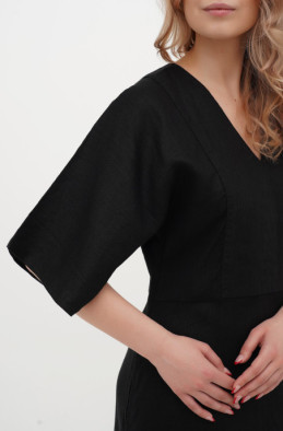 Напівприлегла сукня з льону в стилі "Бохо". Тканина з ефектом креш. Рукав кімоно з розрізом. У бічних швах розташовані кишені.