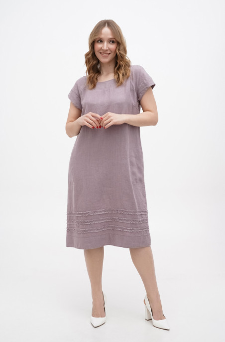 Лляна сукня для великих фігур. Сукня прямого силуету з ефектом креш, у бічних швах є кишені. Сукня без застібки.