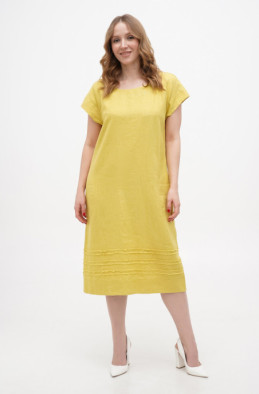 Лляна сукня для великих фігур. Сукня прямого силуету з ефектом креш, у бічних швах є кишені. Сукня без застібки.