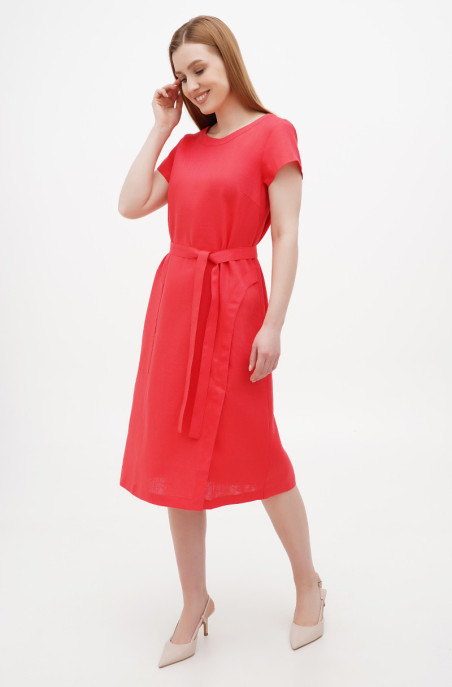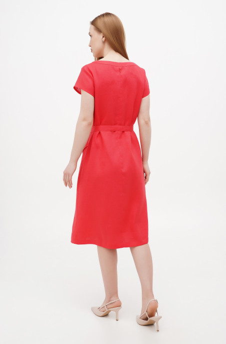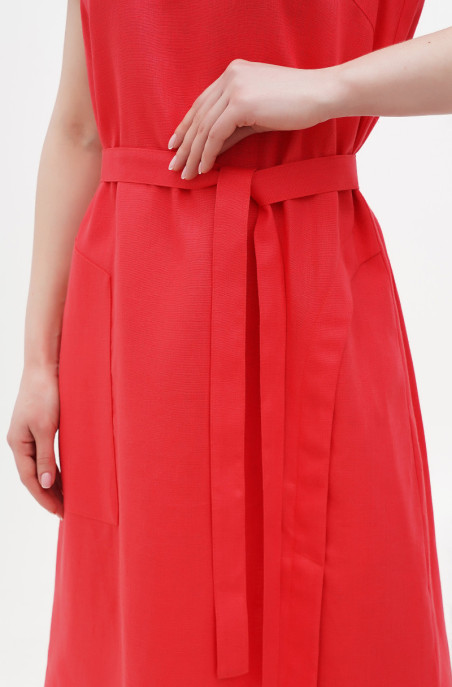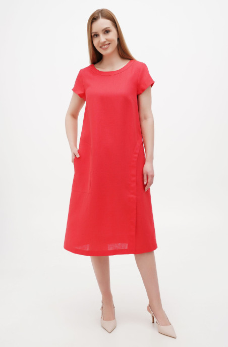 Пряма лляна сукня з розрізом та накладною кишенею по переду. По спинці застібка-блискавка. Сукню можна носити під пояс.