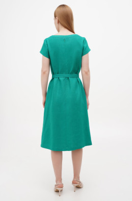 Пряма лляна сукня з розрізом та накладною кишенею по переду. По спинці застібка-блискавка. Сукню можна носити під пояс.