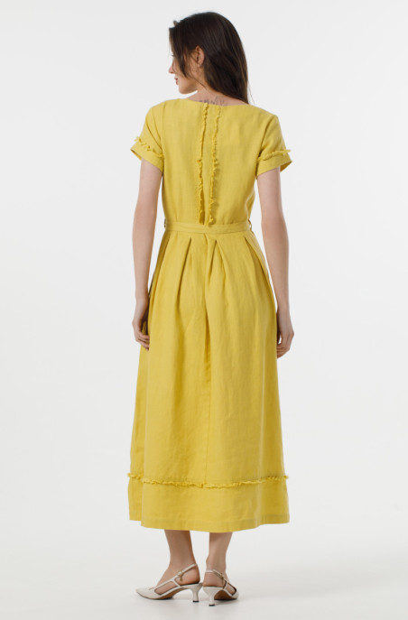 Сукня Х-подібного силуету з лляної тканини з ефектом креш. У бічних швах сукні розташовані кишені. Сукня під пояс та без застібки. (Код 00026/42/284)